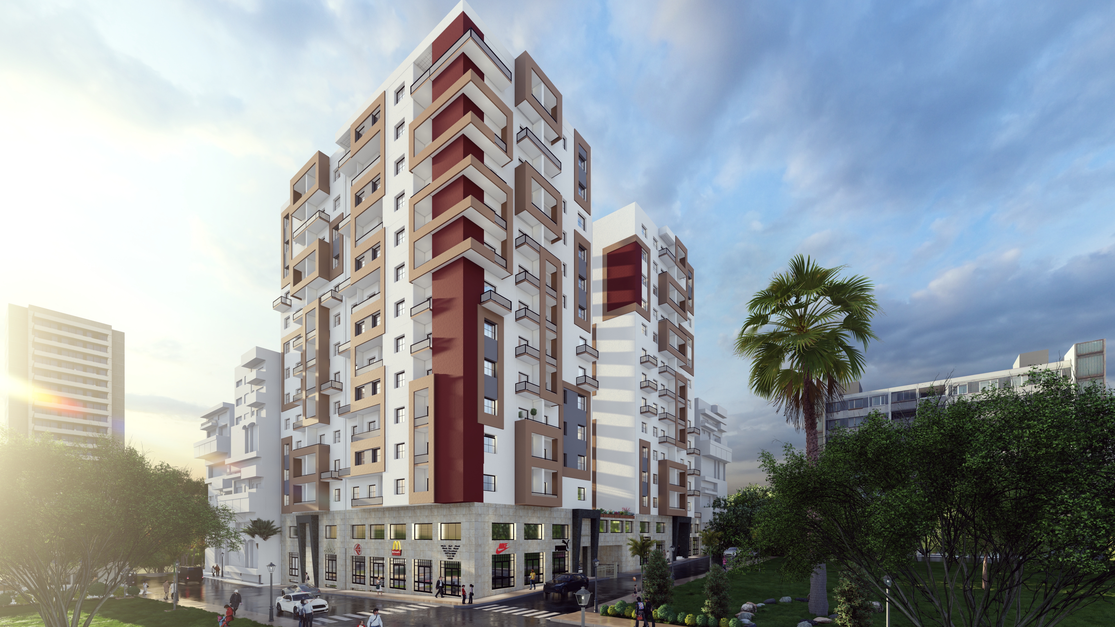 Nous avons le plaisir de remettre entre vos mains un projet immobilier de 114 logements au rond point de canastel,à 900 m du stade Olympique; nouvelle zone d’extension urbanistique à Oran Est.