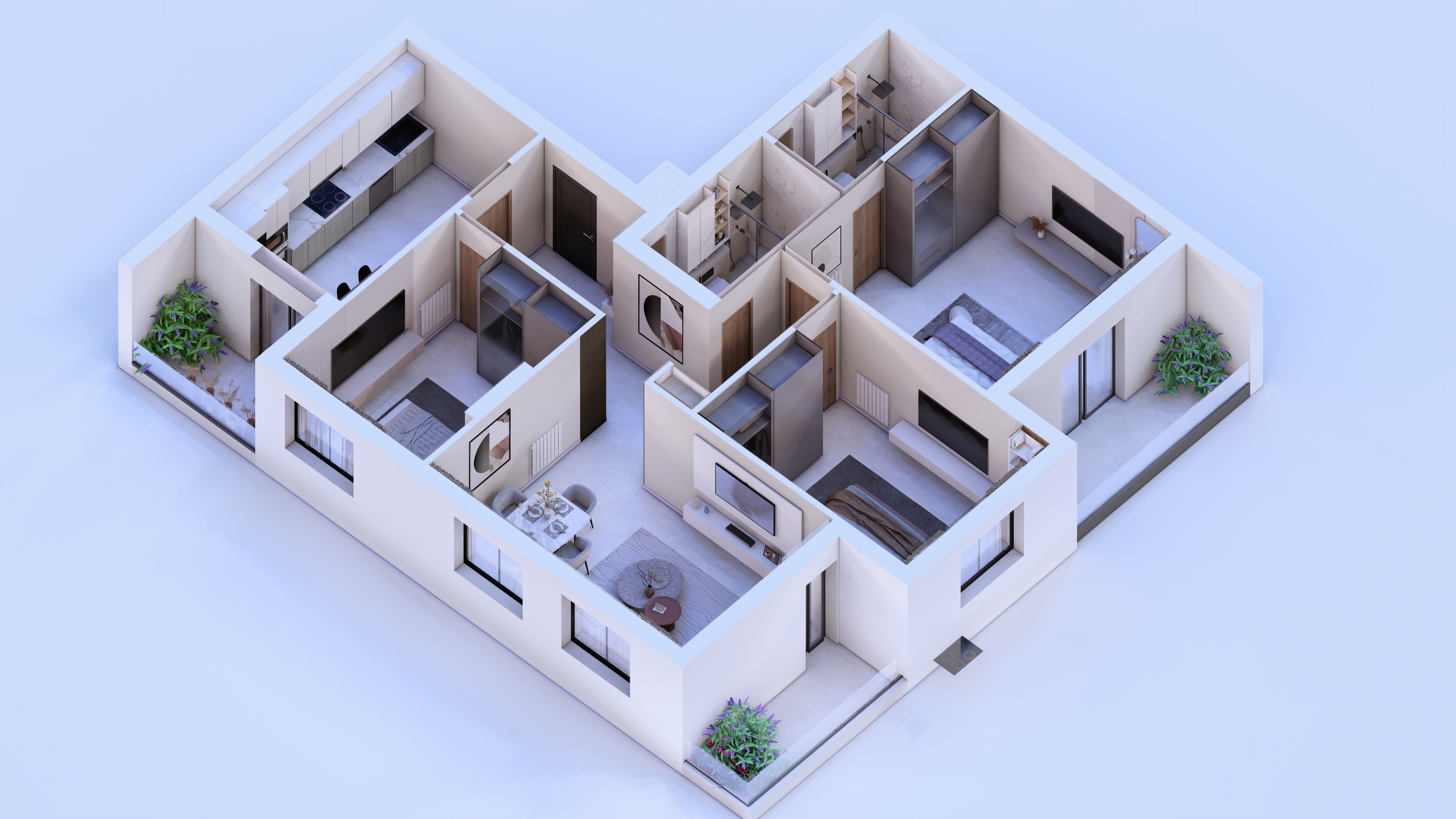 Le projet procure des appartements avec des équipements haut standing ; double ascenseurs, parking sécurisé , climatisation, cuisine équipée, visiophone. et assure la sécurité et tranquillité garanties dans un environnement urbain privilégié.