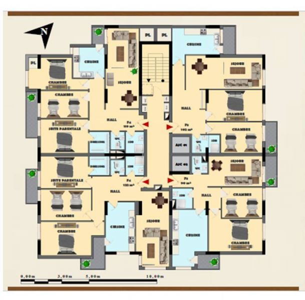 Antares 6 est une résidence qui contient des appartements de types F3et F4 simplex de différentes superficies.